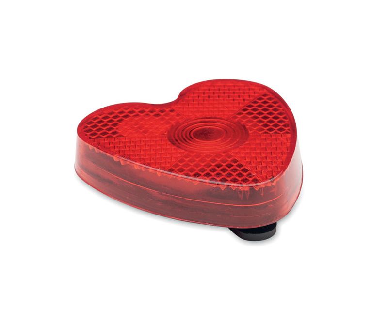 Lumina rosie reflectorizata in forma de inima, din ABS, cu clema spate. Include 2 baterii LR44 inlocuibile.