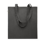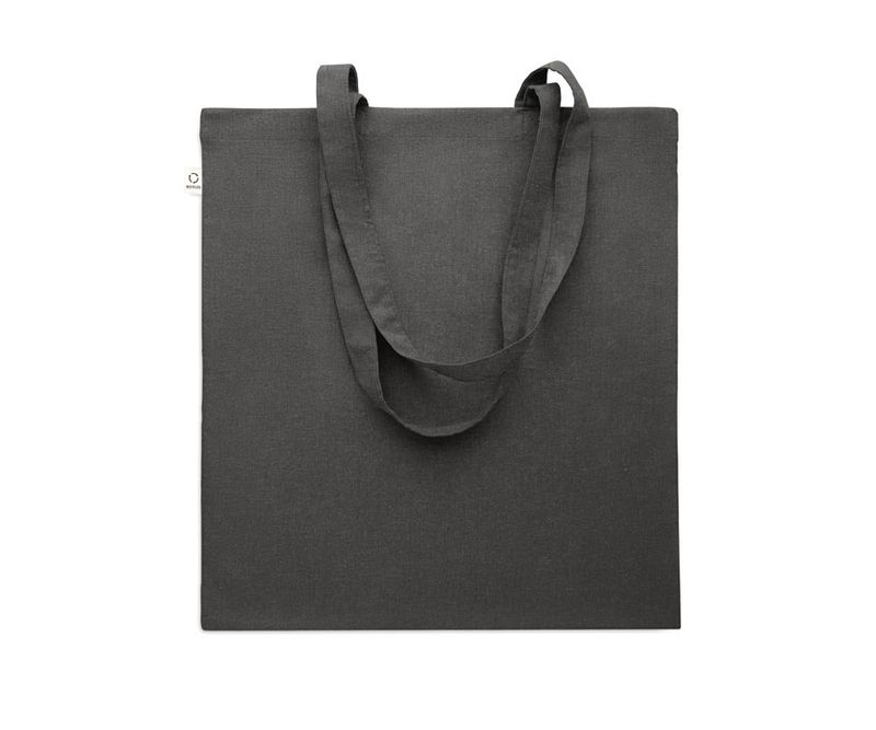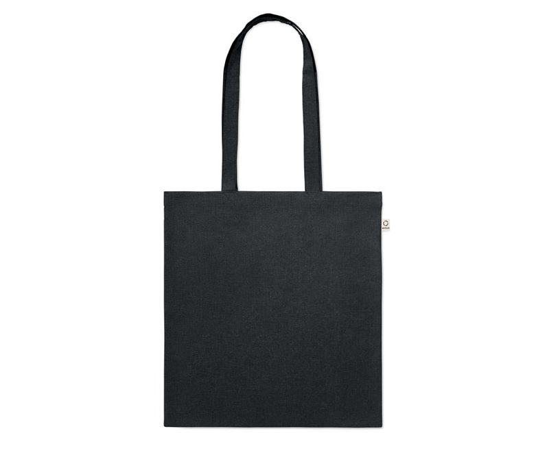 Punga de cumparaturi din bumbac reciclat post-consumator (70% bumbac reciclat si 30% RPET) cu manere lungi. 140 gr/m². Acest articol se poate micsora dupa imprimare.