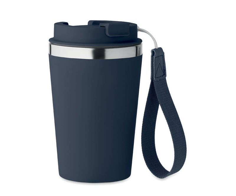 Pahar cu perete dublu din otel inoxidabil reciclat (90% otel inoxidabil reciclat si 10% otel inoxidabil) cu strat exterior din PP si curea de incheietura din RPET. Capacitate: 350 ml.