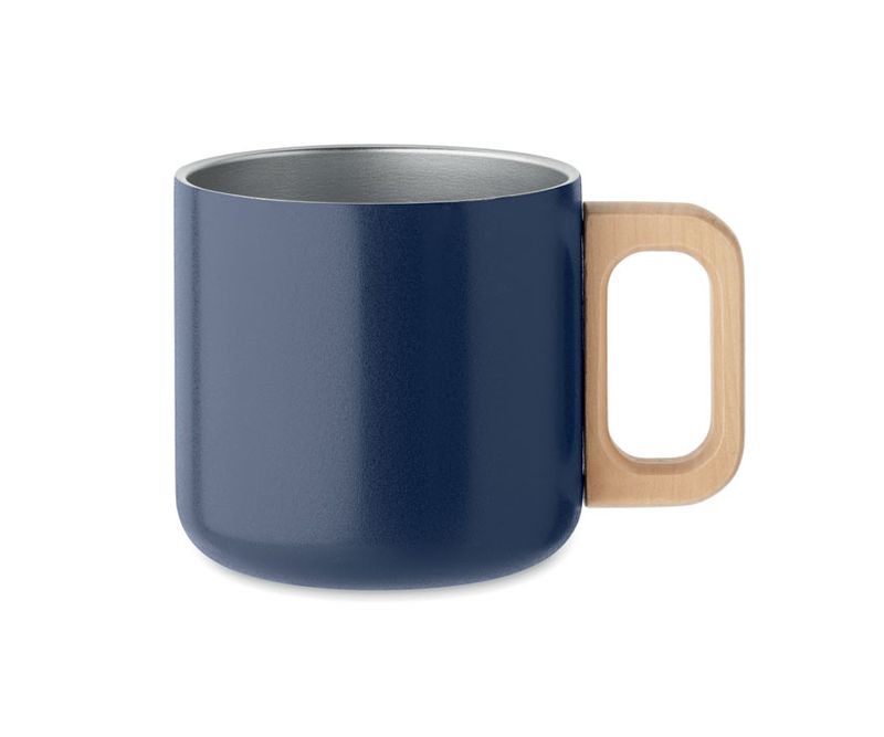 Cana cu perete dublu din otel inoxidabil reciclat (90% otel inoxidabil reciclat si 10% otel inoxidabil), cu maner din lemn. Capacitate: 350 ml.