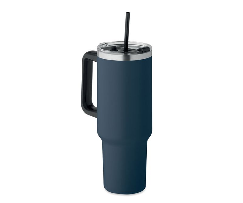 Termos cu perete dublu din otel inoxidabil reciclat cu pai din PE. Capacitate 1200 ml. (90% inox reciclat si 10% otel inoxidabil).