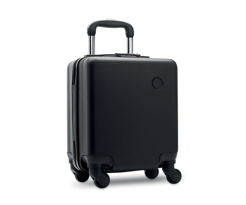 Trolley cabina din ABS, 14 inchi cu 4 roti. Are un buzunar interior cu fermoar. Inclusiv un lacat cu combinatie si cadru cu tub dublu.