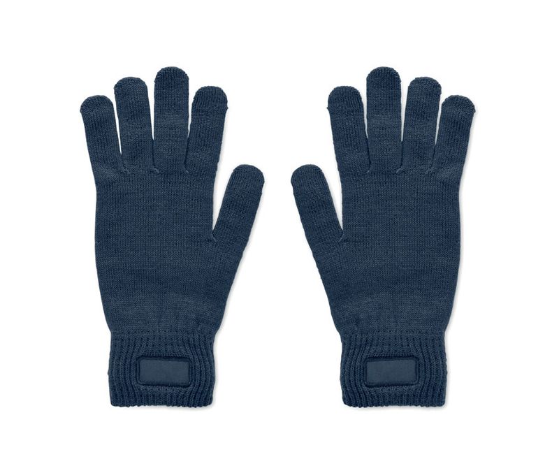 Manusi tricotate din poliester RPET moale si elastic, cu eticheta pentru imprimare.
