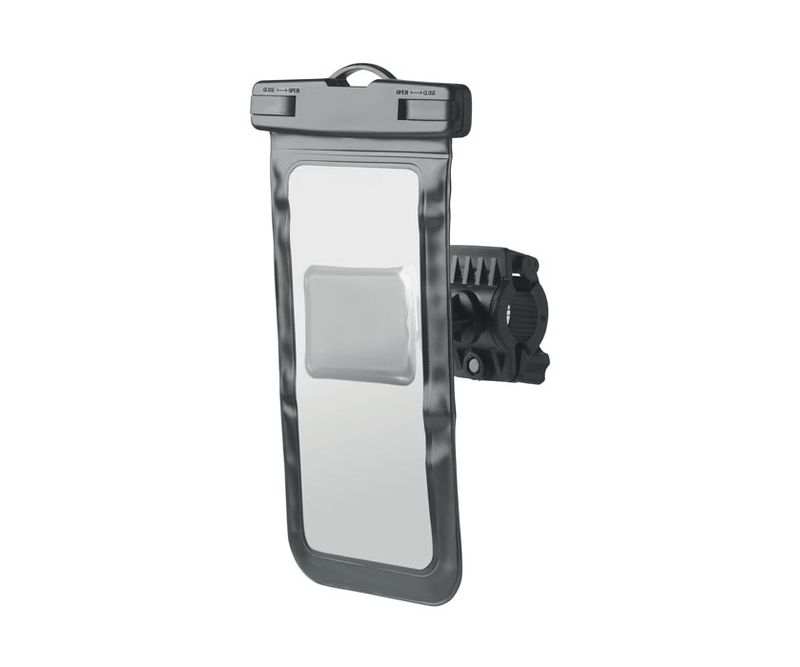 Carcasa impermeabila pentru montarea telefonului mobil pe bicicleta din PVC , rotativa la 360 de grade. Clasificare impermeabila: IPX 6. Se potriveste pentru dimensiunea de 6,7 inch.