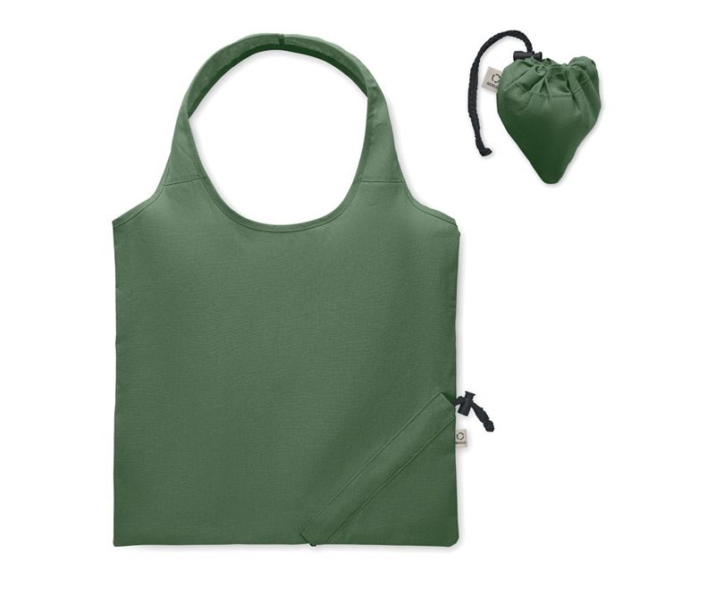 Sacosa de cumparaturi pliabila din bumbac pre-consumator reciclat (70% bumbac reciclat si 30% RPET). 140 gr/m².