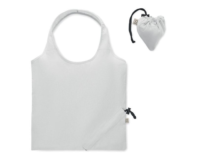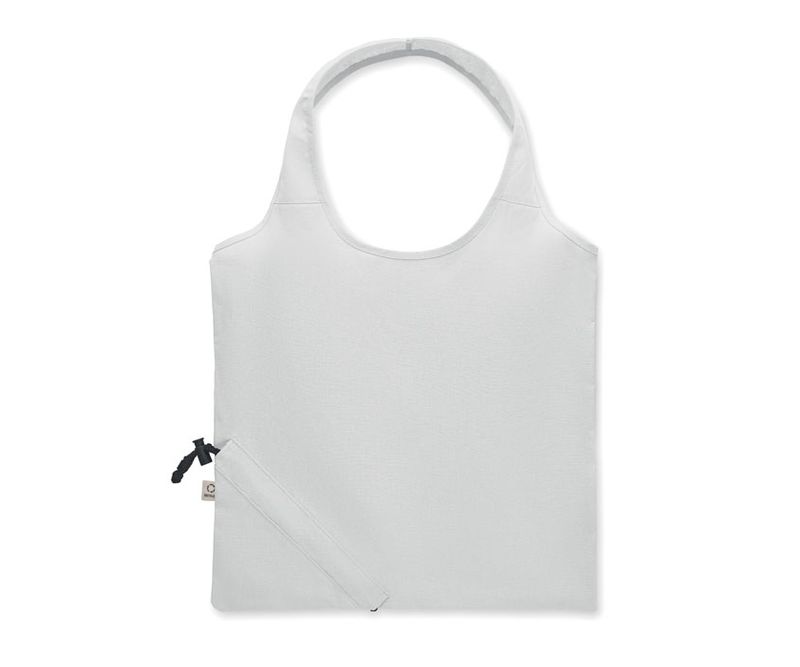 Sacosa de cumparaturi pliabila din bumbac pre-consumator reciclat (70% bumbac reciclat si 30% RPET). 140 gr/m².