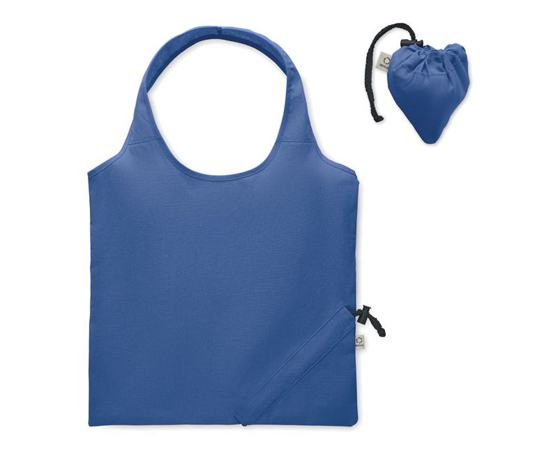 Sacosa de cumparaturi pliabila din bumbac pre-consumator reciclat (70% bumbac reciclat si 30% RPET). 140 gr/m².