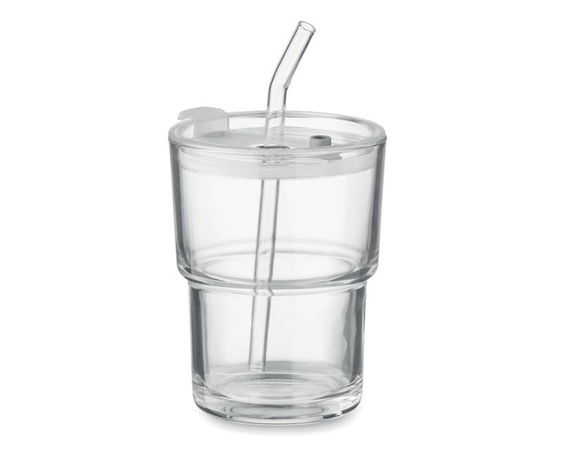 Pahar de sticla cu capac, inclusiv pai de sticla detasabil. Slot pentru pai si capac fara scurgeri cu deschidere directa a bauturii. Capacitate 400 ml.