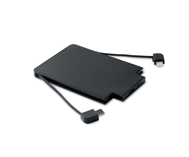 Powerbank magnetic de dimensiunea unui card cu capacitate de 2500 mAh in ABS cu cabluri incorporate. Intrare: Type-C si iesire Type-C si dispozitive IOS compatibile.