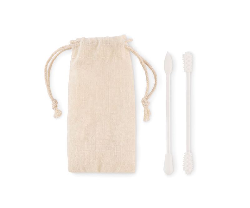 Set de 2 betisoare reutilizabile si lavabile din silicon cu 3 capete diferite. Prezentate in saculet din bumbac cu cordon.
