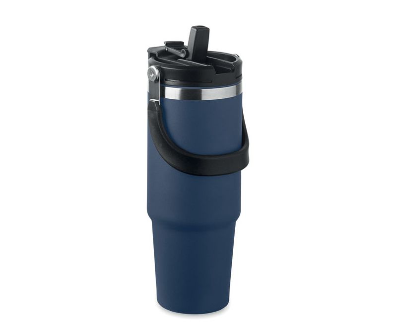 Pahar cu dublu perete din otel inoxidabil reciclat (90% otel inoxidabil reciclat si 10% otel inoxidabil) cu capac si pai interior, gura pliabila si deschidere directa pentru baut. Capacitate 850 ml.
