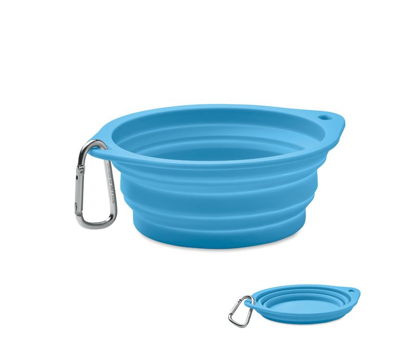 Bol portabil pliabil din silicon pentru animale de companie pentru mancare sau bautura, cu carabina. Capacitate: 350 ml.