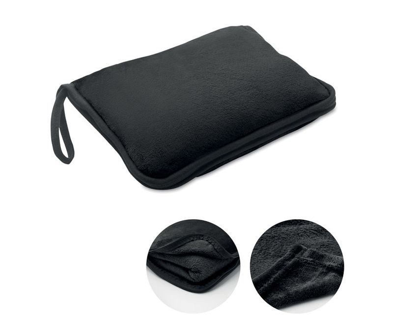 Set 2 in 1 de patura si/sau perna de calatorie din flanel in 220 gr/m². Articolul poate fi pliat. Include o curea de umar si un maner din poliester 600D RPET.