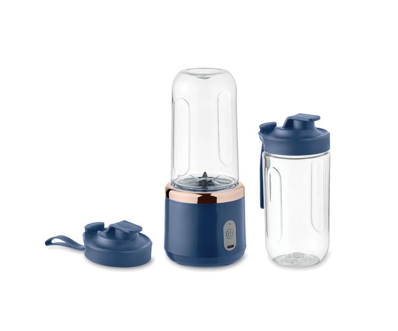 Blender portabil pentru smoothie, mixer cu lama cu 6 foi si 2 pahare de suc detasabile in PCTG cu curea. Baterie USB reincarcabila de 1200 mAh. Capacitate: 400 ml (2 x).