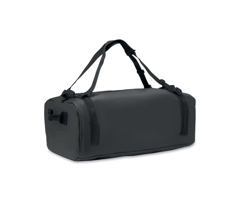 Geanta duffle mare, geanta sport sau de calatorie care poate fi folosita si ca rucsac, din tarpaulin 50C cu compartiment interior cu fermoar. Are o curea de umar detasabila si reglabila si are captuseala RPET .