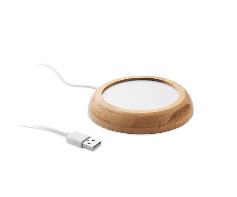 Dispozitiv incalzitor de cani din bambus. Mentine bauturile calde la o temperatura maxima de 45ºC. Are un cablu de conectare USB.