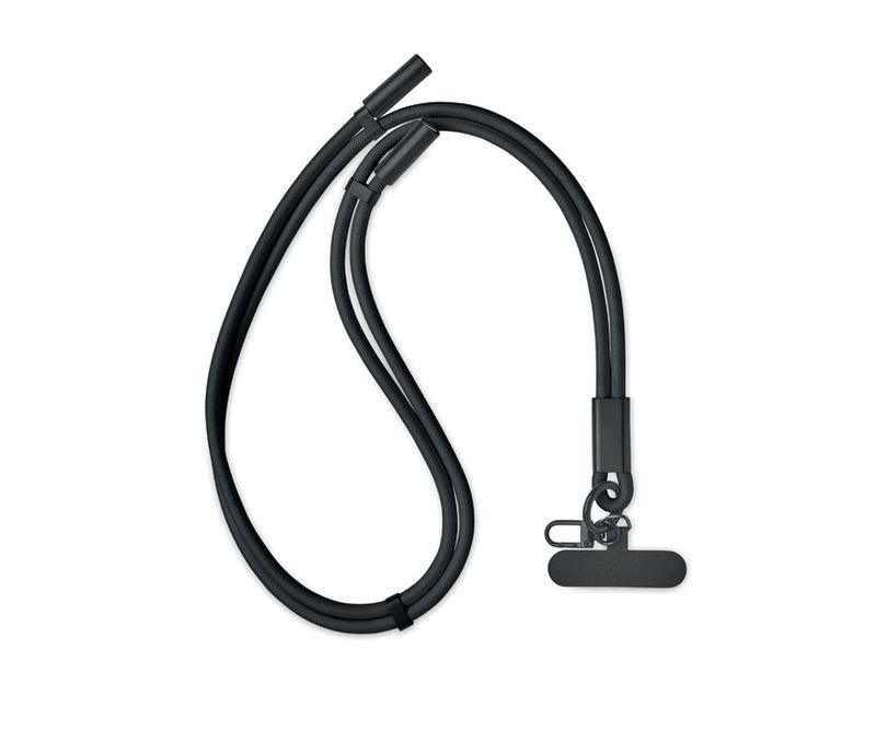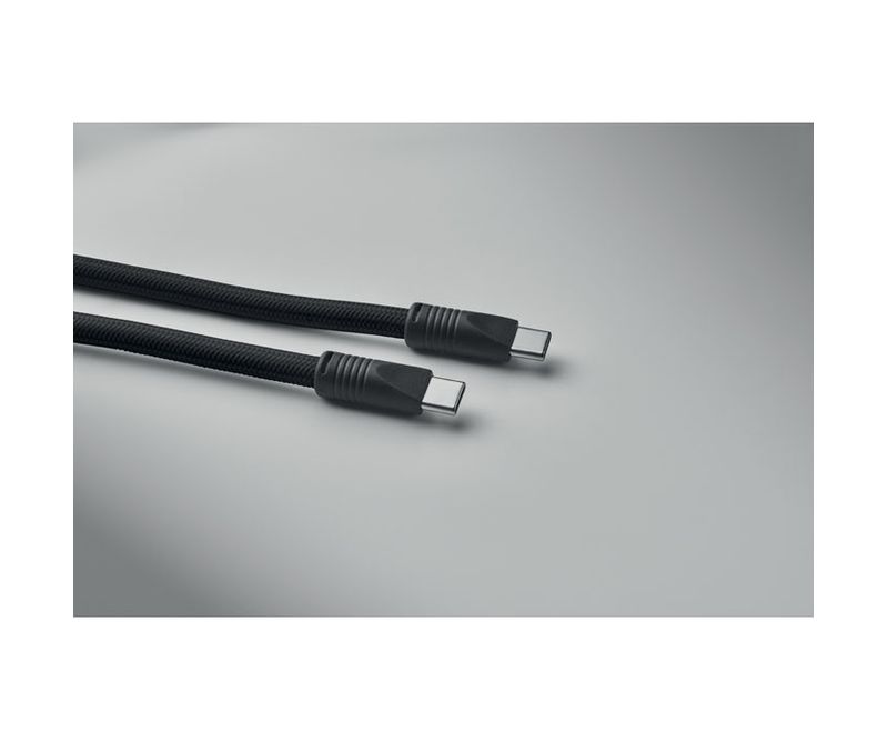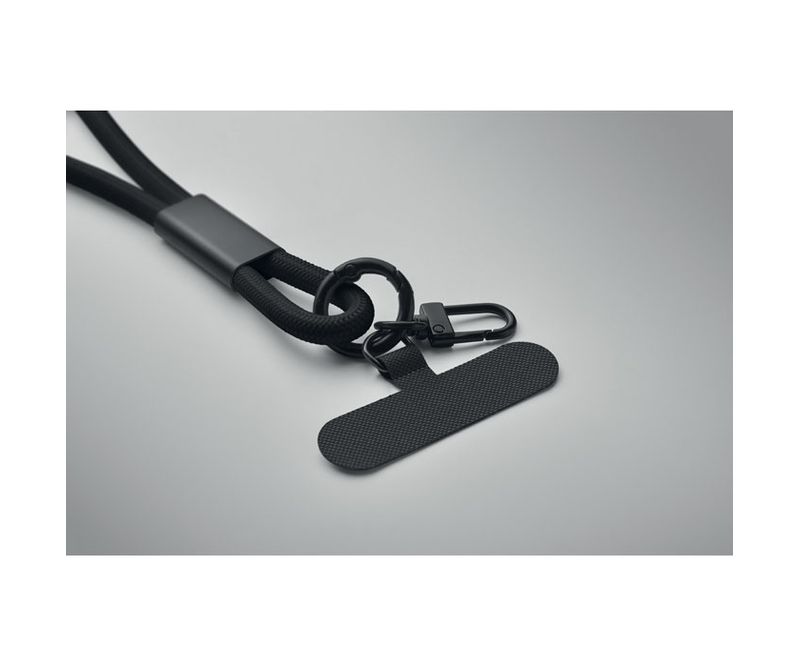 Lanyard cu cablu de incarcare si transfer de date 60W tip C la tip C in RPET cu suport pentru cablu telefonic si breloc.