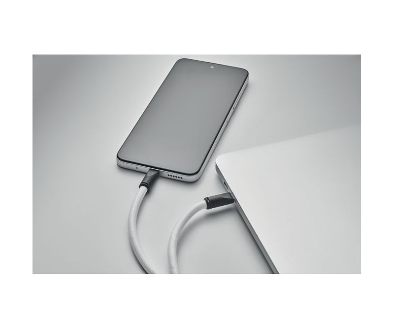 Lanyard cu cablu de incarcare si transfer de date 60W tip C la tip C in RPET cu suport pentru cablu telefonic si breloc.