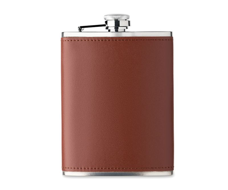 Sticla subtire din otel inoxidabil cu capac din piele PU. Capacitate de 200 ml.