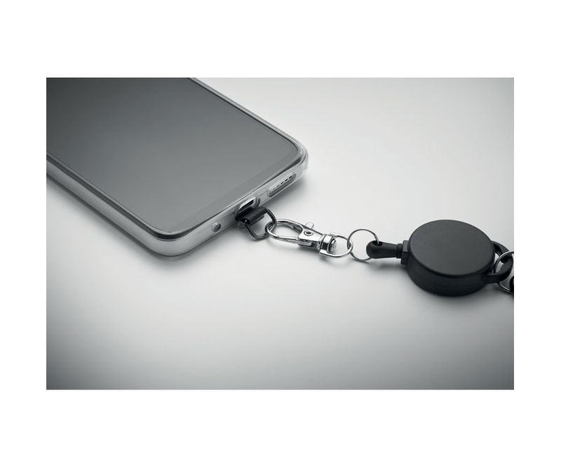 Suport retractabil pentru telefon si/sau ecuson din ABS cu carabina din aluminiu. Manerul nu este pentru alpinism (utilizare neprofesionala).