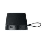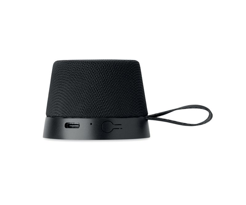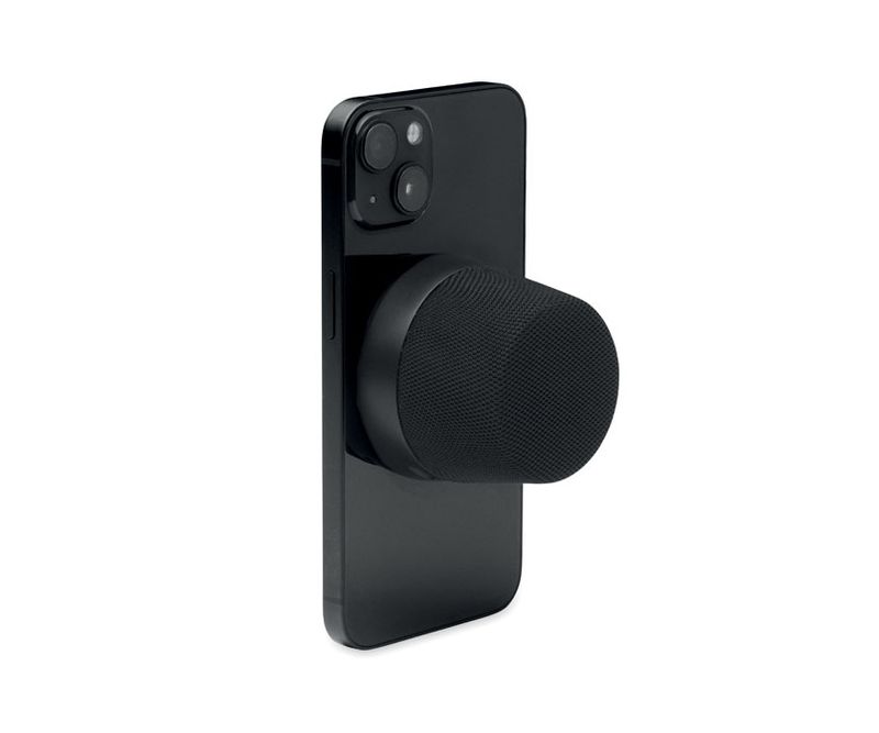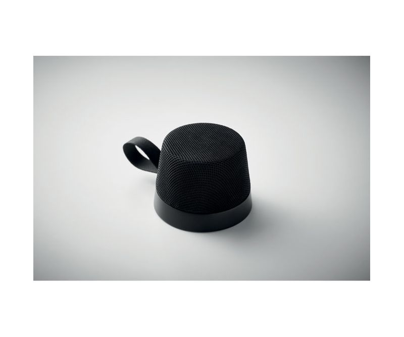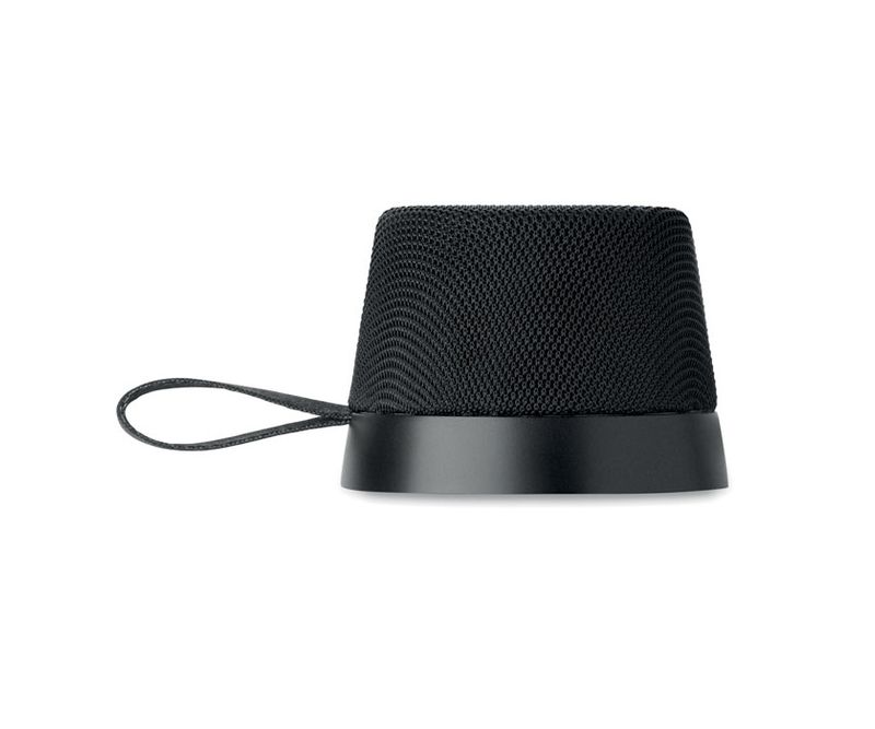 Boxa wireless 4.2 in carcasa ABS, tesatura din poliester RPET si bucla. Magnetul de pe partea din spate sustine functionalitatea standului. Baterie reincarcabila Li-ION 300 mAh inclusa. Date de iesire: 3W, 4 Ohm si 5V. Autonomie 2h.