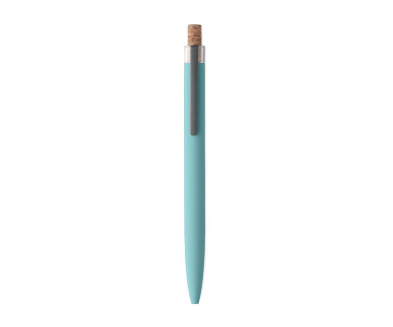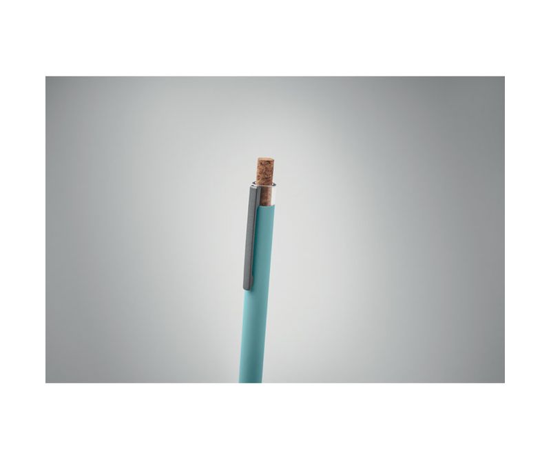 Pix cu bila din aluminiu reciclat cu buton din pluta si clips metalic. Mina albastra.