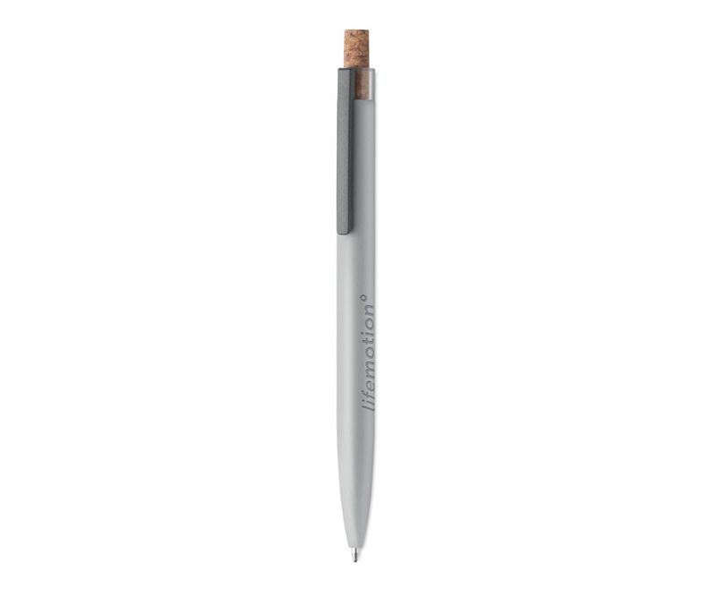 Pix cu bila din aluminiu reciclat cu buton din pluta si clips metalic. Mina albastra.