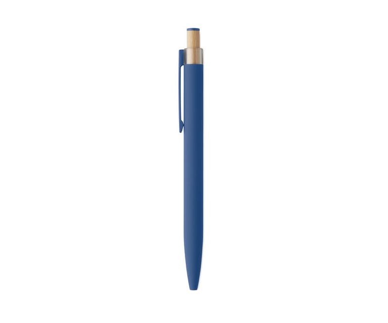 Pix cu bila din aluminiu reciclat, cu buton din bambus si detalii in aceeasi culoare, clip metalic asortat. Mina albastra.