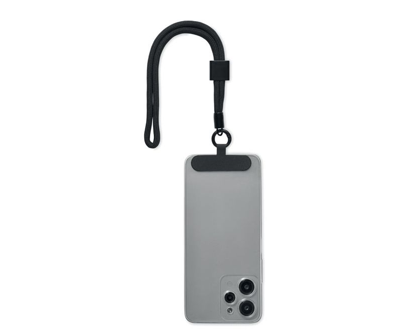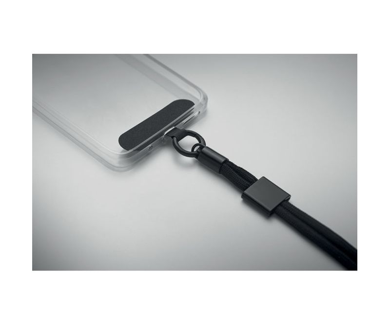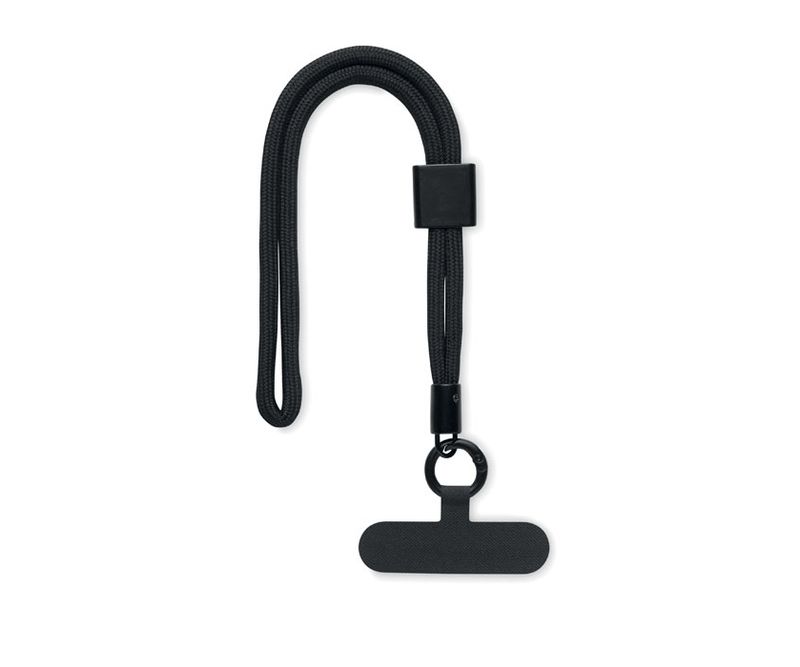 Curea reglabila pentru incheietura mainii cu suport pentru cablu telefon din poliester RPET. Lungime 25 cm.