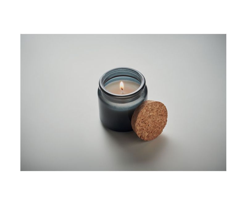 Lumanare din ceara vegetala cu aroma de vanilie in suport din sticla cu capac din pluta. 70 gr. Timp de ardere 12 ore