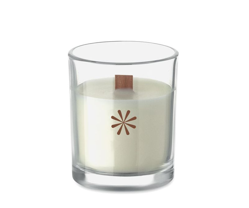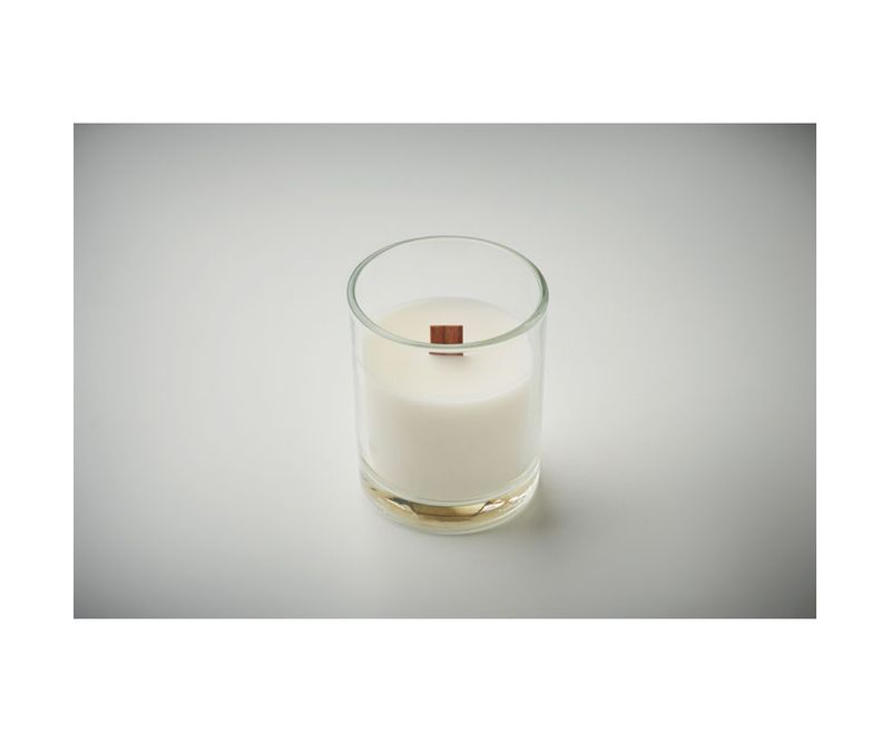 Lumanare din ceara vegetala parfumata cu vanilie 80 gr in sticla cu fitil din lemn. Timp de ardere 14 ore