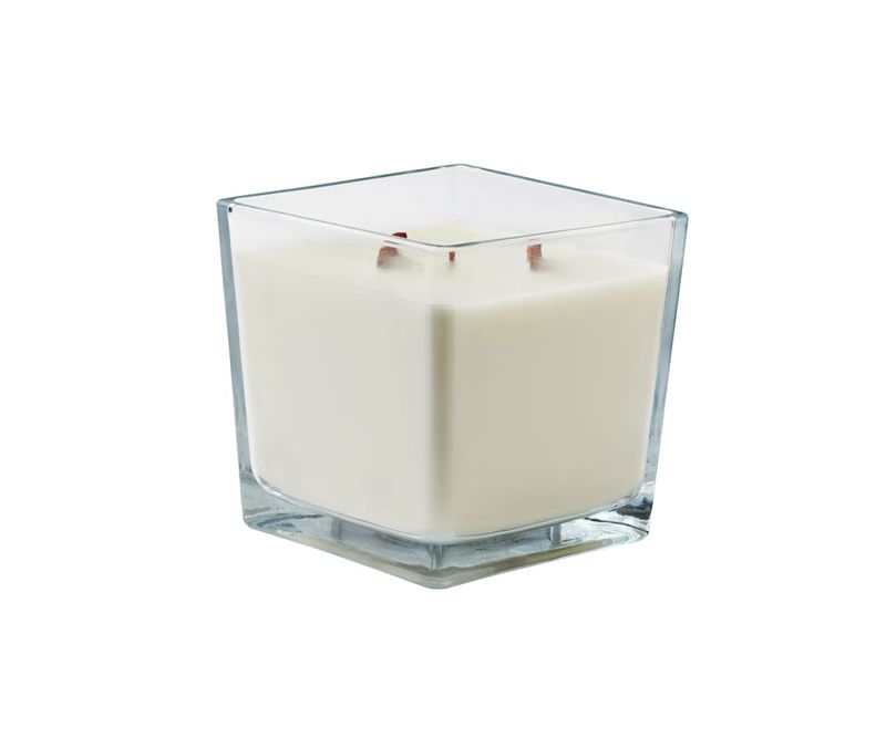 Lumanare din ceara pe baza de plante cu aroma de vanilie foarte mare, 1300gr, din sticla, cu 2 fitiluri din lemn si design de stup de albine pe partea de sus. Timp de ardere 70 de ore