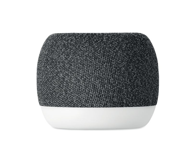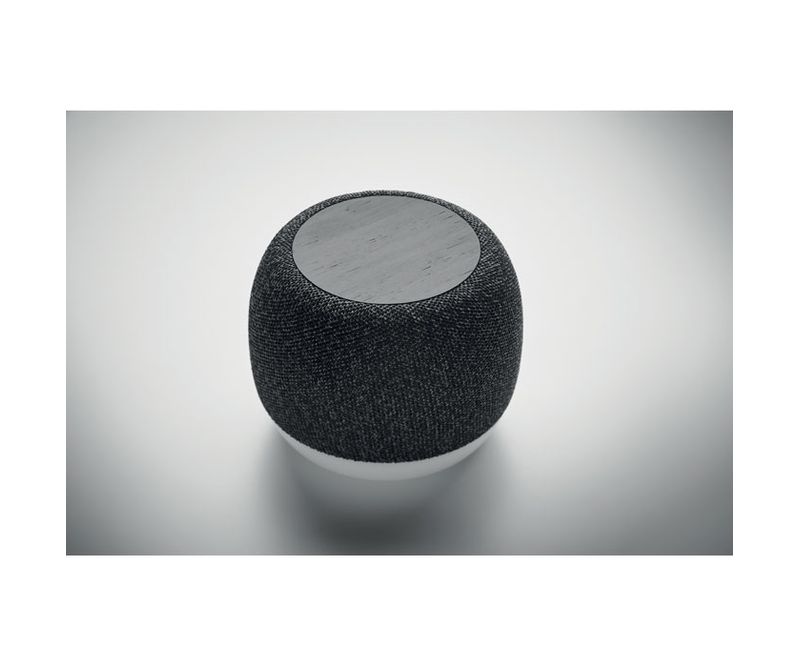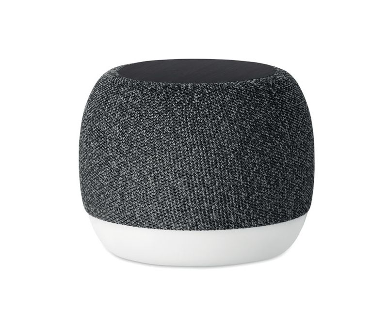 Boxa wireless 5.0 din ABS si tesatura RPET si detaliu din bambus pe partea superioara. 1 Baterie reincarcabila Li-ION de 1200 mAh inclusa. Include un port pentru card SD si un cablu AUX/ USB. Date de iesire: 5W, 3 Ohm si 5V. Timp de redare aprox. 3h.