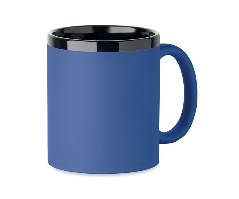 Cana din ceramica cu invelis moale la atingere si interior/ margine negru. Pentru gravura laser. Capacitate: 300 ml. Ambalata individual in cutie de carton alba.