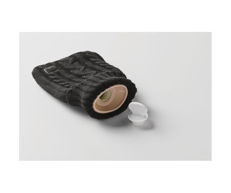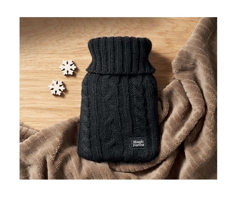 Sticla de apa calda cu punga acrilica tricotata. Folosita pentru a oferi caldura, de obicei in pat, dar si pentru aplicarea caldurii pe o anumita parte a corpului. Capacitate: 450 ml.