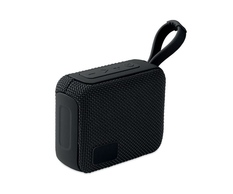 Boxa wireless 5.0 din ABS cu tesatura RPET si cablu de agatat. 1 Baterie reincarcabila Li-ION de 800 mAh inclusa. Include un port pentru card SD si un cablu AUX/ USB. Date de iesire: 5W, 3 Ohm si 5V. Timp de redare aprox. 3h