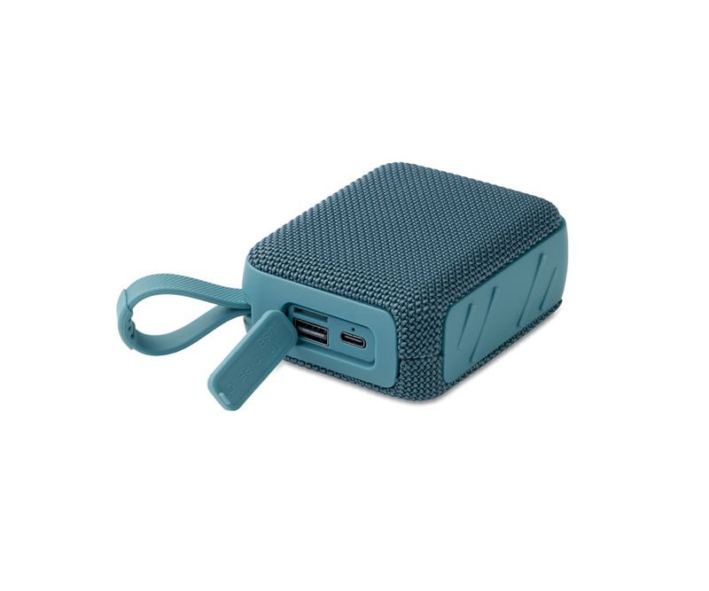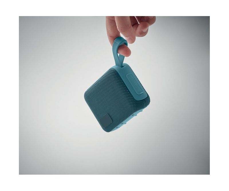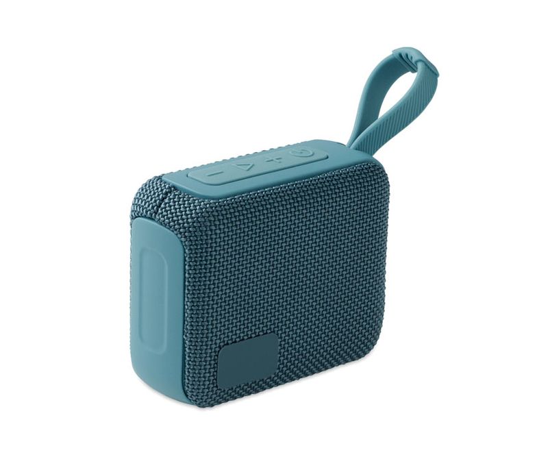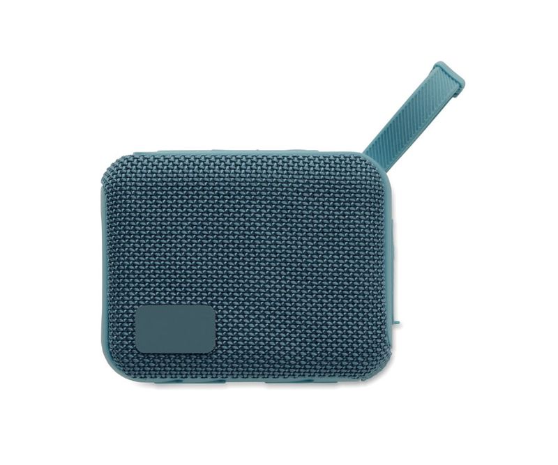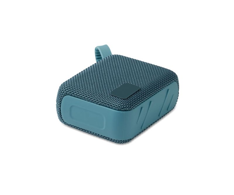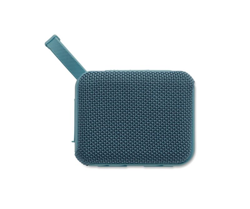 Boxa wireless 5.0 din ABS cu tesatura RPET si cablu de agatat. 1 Baterie reincarcabila Li-ION de 800 mAh inclusa. Include un port pentru card SD si un cablu AUX/ USB. Date de iesire: 5W, 3 Ohm si 5V. Timp de redare aprox. 3h