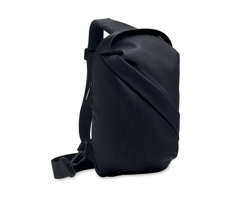 Geanta cross chest din PU moale cu spate captusit RPET 210D. Un compartiment principal mare cu buzunar frontal si fermoar.
