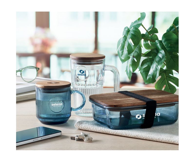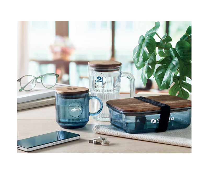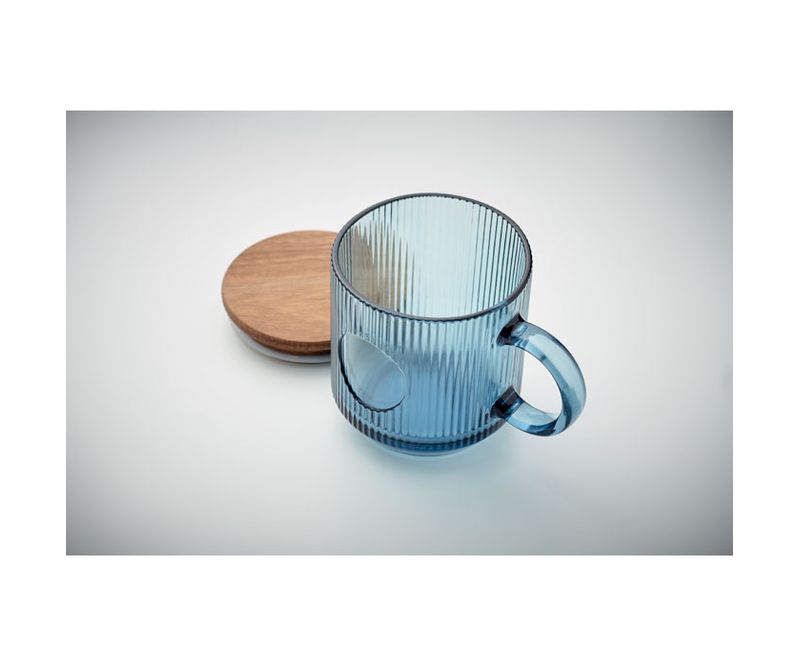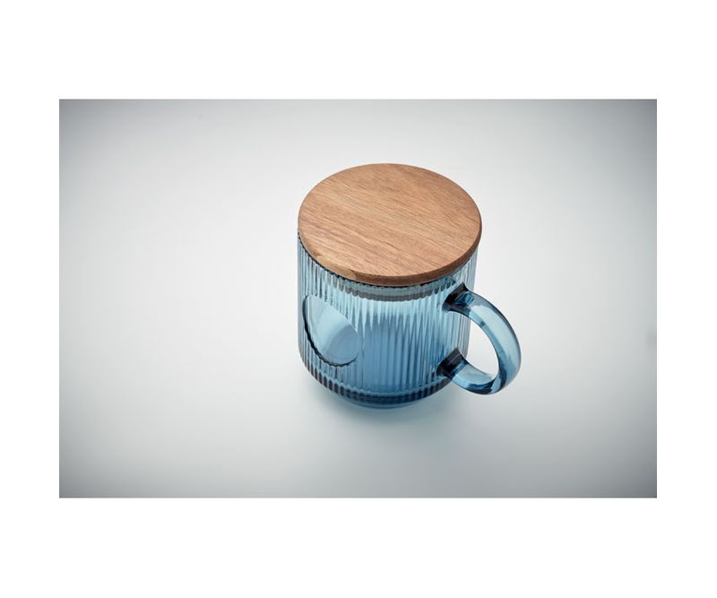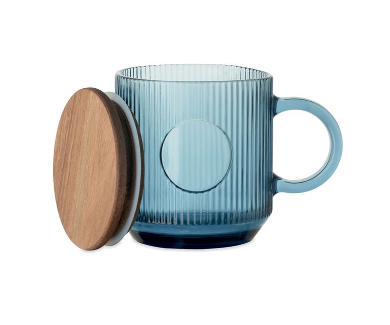 Cana din sticla nervurata cu capac din lemn de salcam. Capacitate: 300 ml. FSC®-certified | FSC 100%, W16.3, FSC-C213206