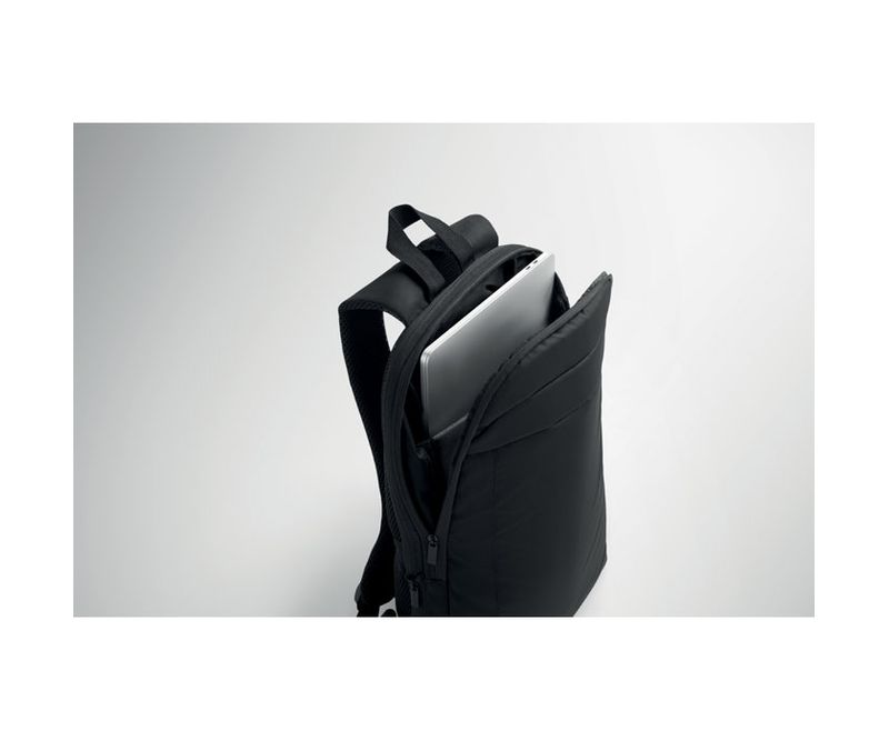 Rucsac extensibil pentru computer din poliester 600D RPET 16'' cu acoperire PU pe fata si captuseala din poliester RPET. Buzunar ascuns cu fermoar si compartiment captusit pentru laptop, compartiment frontal , spate din plasa si curea pentru bagaje.