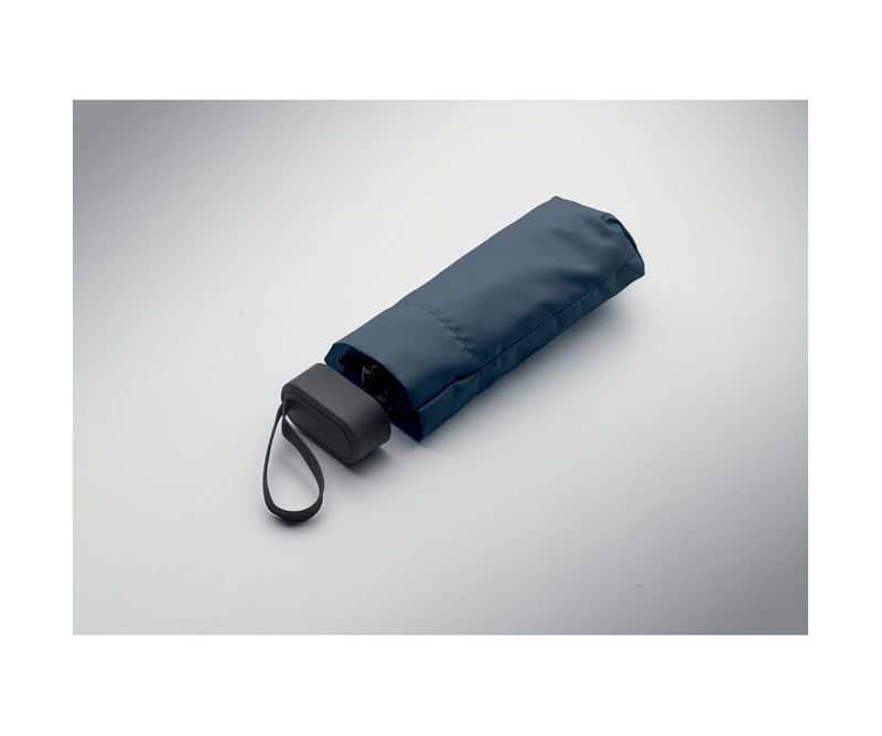 Umbrela manuala de 19 inch cu 5 pliuri, pongee 190T, husa asortata. Cadru rezistent la vant din metal si fibra de sticla, maner cauciucat negru cu curea de incheietura si dimensiuni 17 cm pliata.