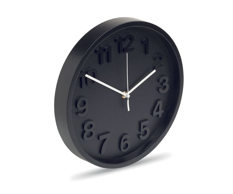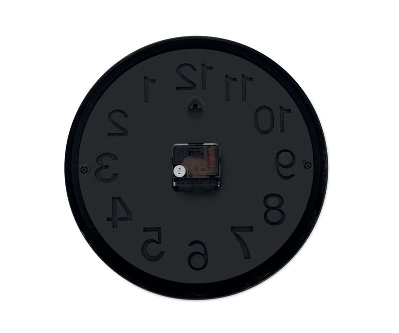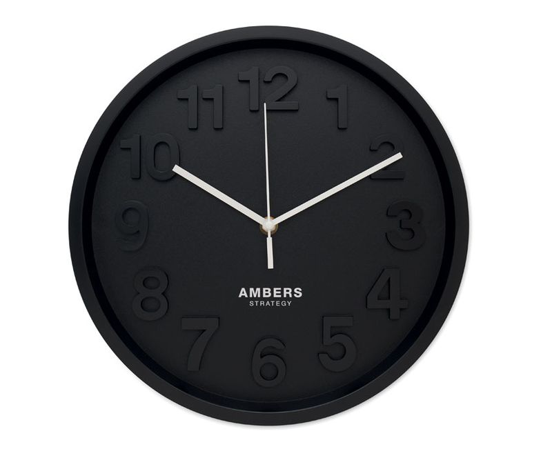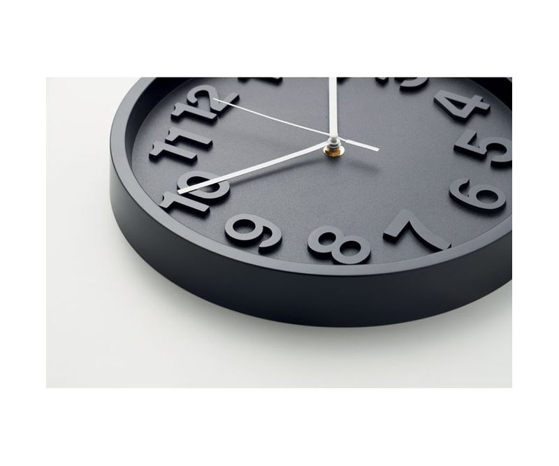 Ceas de perete din PP cu maini din aluminiu si miscare silentioasa. Necesita 1 baterie AA (nu este inclusa).