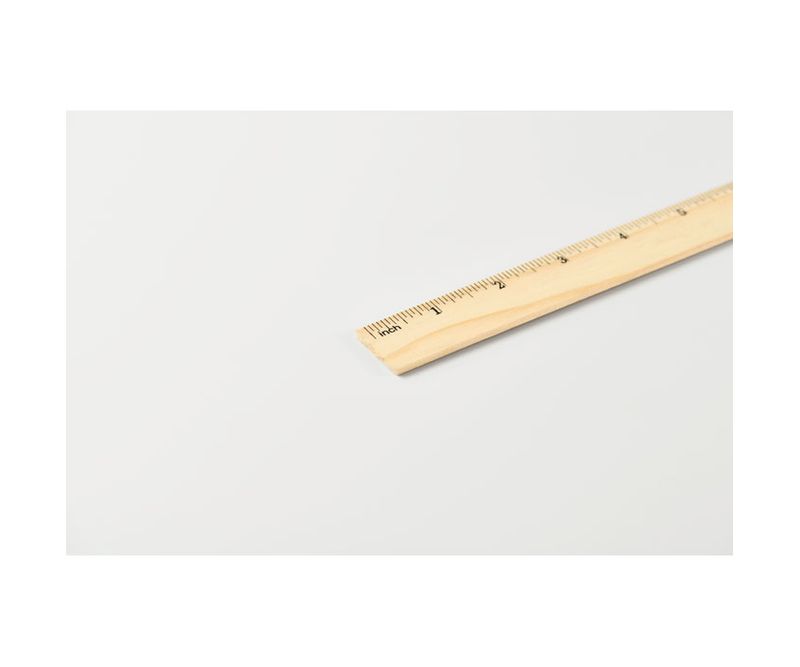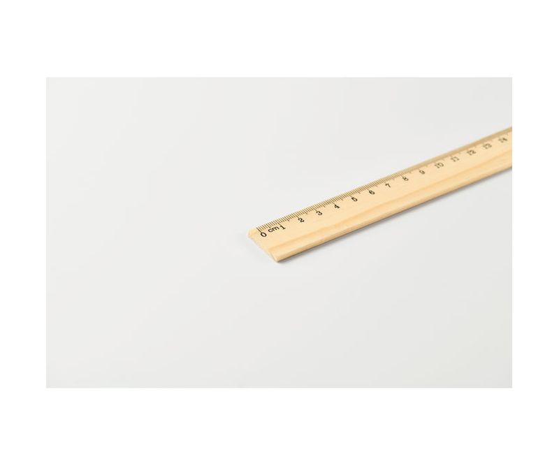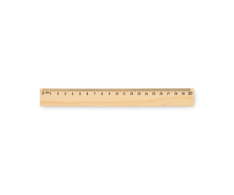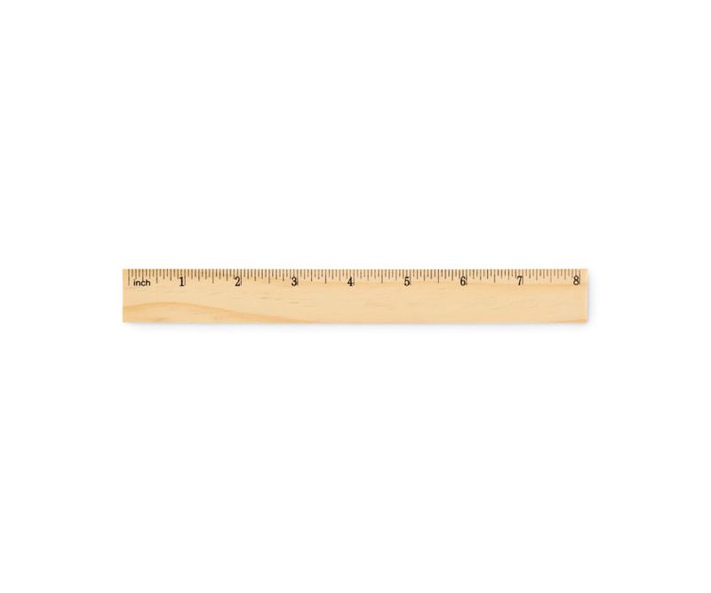 Rigla din lemn de pin de 20 cm cu scala de centimetri pe o parte si scala de inch pe cealalta parte.