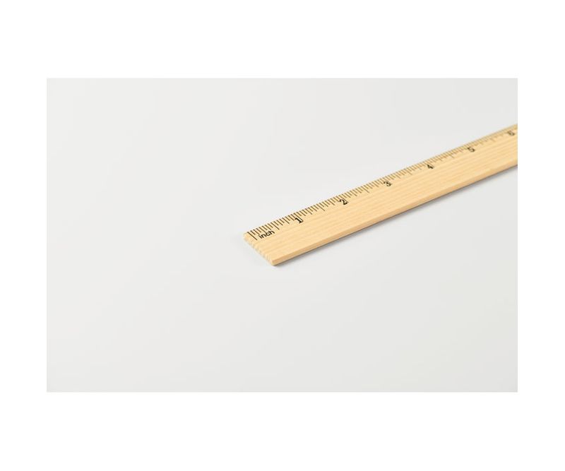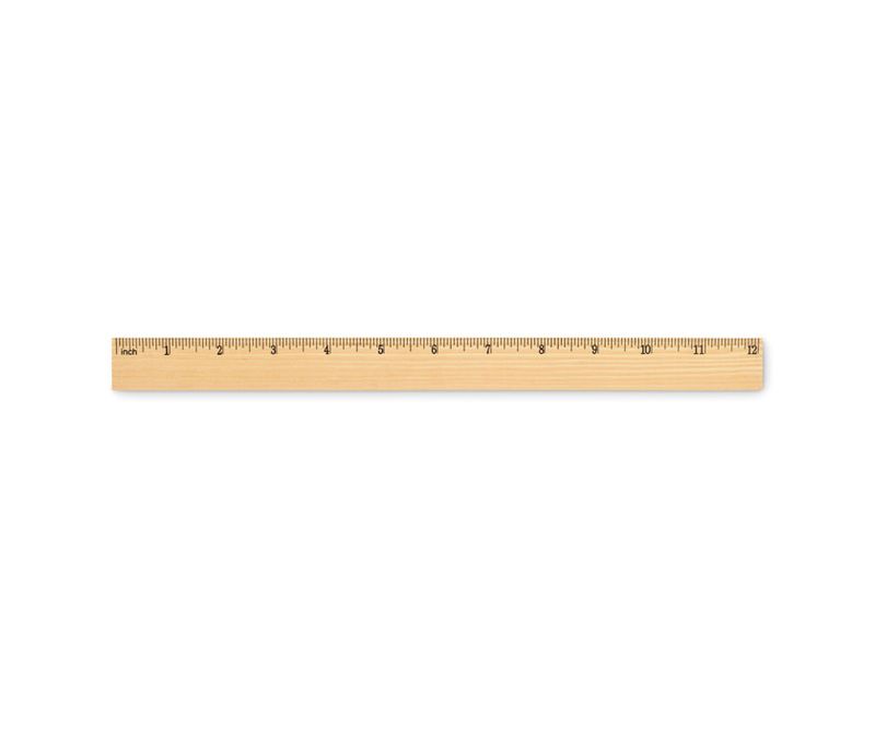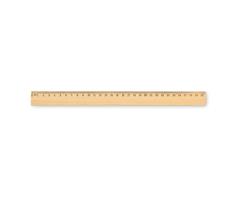 Rigla din lemn de pin de 30 cm cu scala centimetri pe o parte si scala de inchi pe cealalta parte.