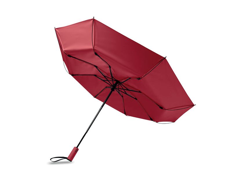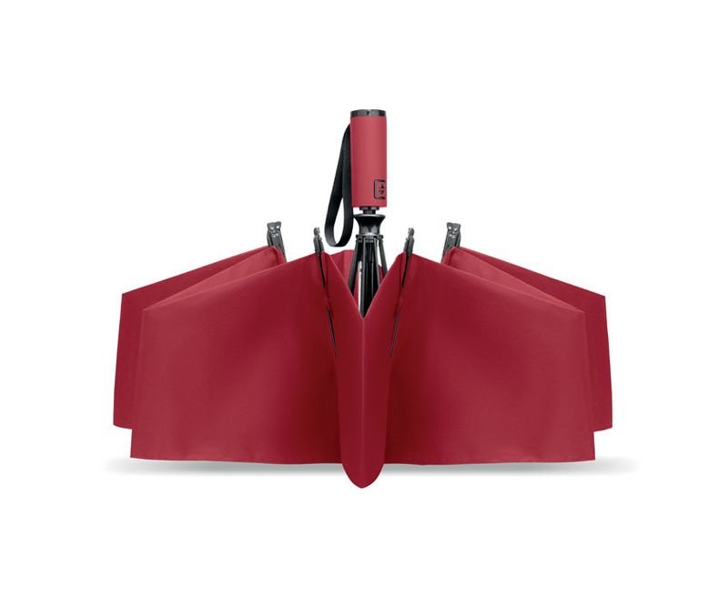 Umbrela 23 anti-furtuna, 3 falduri inverse 190T RPET pongee si husa asortata. Deschidere si inchidere automata, cadru complet negru, nervuri din fibra de sticla si maner din ABS finisat cu cauciuc.