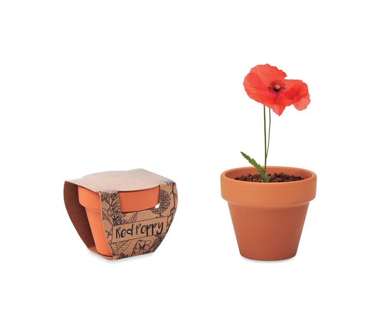 Vas mic de teracota lut , include seminte de „mac'' Fabricat in UE. Compost inclus.