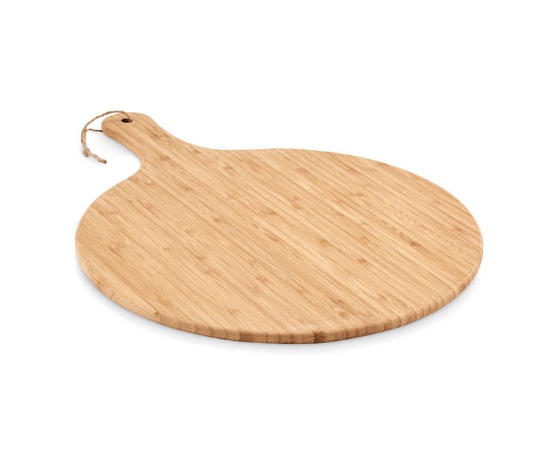 Placa de taiat din bambus cu un maner de servire. Ideal pentru servirea mancarurilor si gustarilor in timpul petrecerilor. Taiati legume pe el sau folositi-o ca o tava pentru branzeturi. Cu un diametru de 31cm este suficient de mare pentru a servi si pizza. Cand nu utilizati taietorul, il puteti agata cu snurul din iuta. FSC®-certified | FSC 100%, N5.7, FSC-C213206