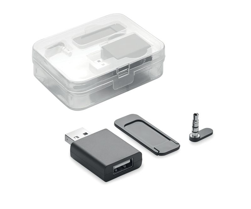 Set in carcasa PP cu dispozitiv pentru blocarea camerei web, date si audio.