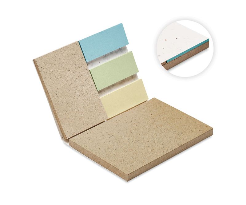 Set Bloc Memo cu coperti moi 25 etichete adezive cu seminte iarba si evidentiatoare in 3 culori. La fel ca blocknotes - urile traditionale galbene, puteti face notite pe hartie si le puteti lipi undeva la vedere, astfel incat sa nu le uitati. Dupa ce ati folosit toate cele 25 de markere si notes-uri de hartie, puteti planta coperta in sol. O selectie de seminte de flori salbatice de pajiste va creste si va oferi acestui obiect un nou scop. Un obiect de birou cu adevarat ecologic si sustenabil. Fabricat in UE.