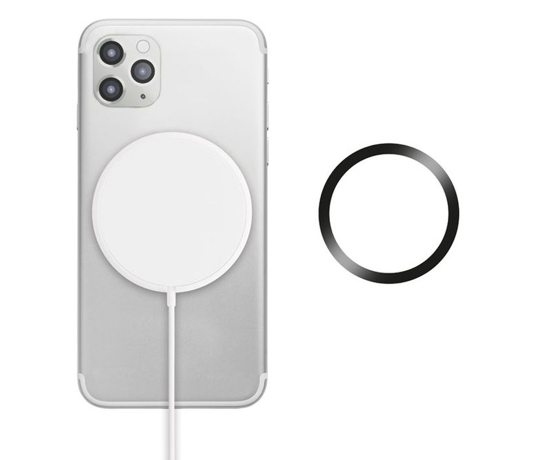 Incarcator magnetic fara fir din ABS. Iesire: DC 9V/1,1A (10W) pentru incarcare rapida, dar poate fi folosit si cu alte telefoane cu incarcare wireless nemagnetica, folosind inelul metalic magnetic inclus.